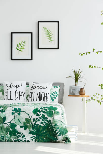 Botanikos rašto medvilnės patalynės komplektas su žaliųjų augalų motyvais.